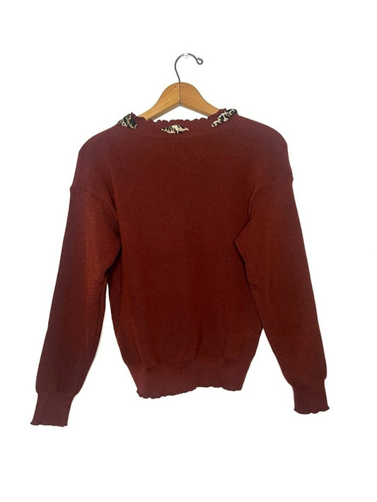 Crewneck Sweater with Leopard Bow