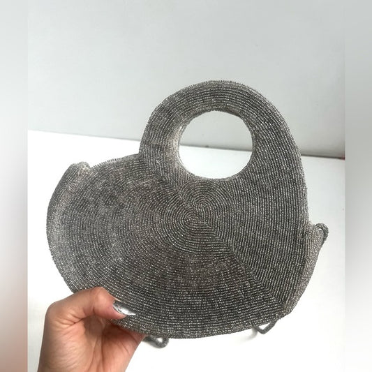 Anthropologie | Llani Silver Beaded Heart Bag