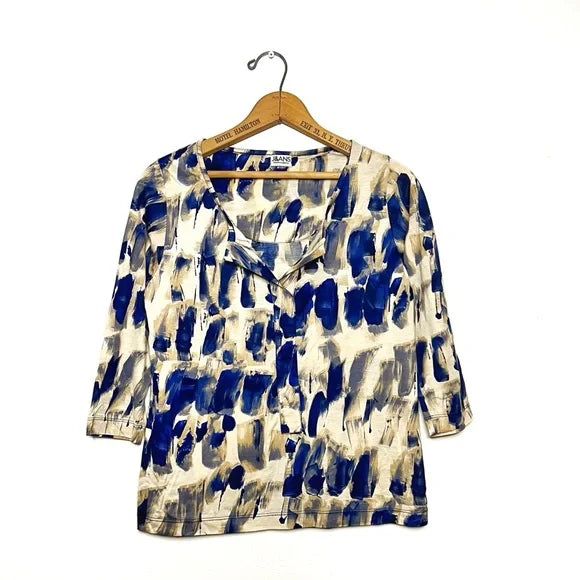✨ cream colored with blue abstract print