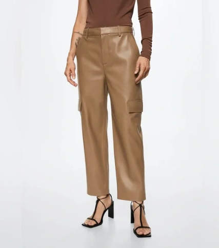 ✨ beige cargo style faux leather pants by Mango