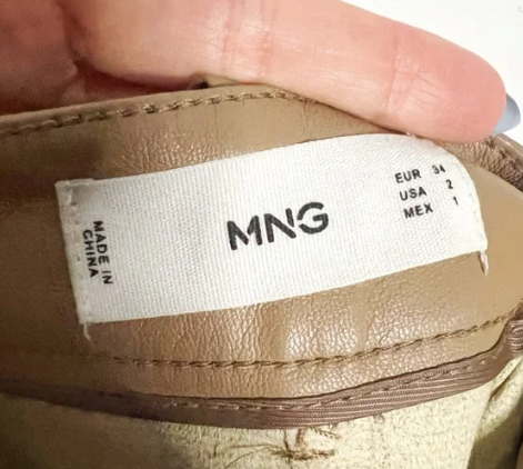 Mango | Beige Leather Effect Trousers